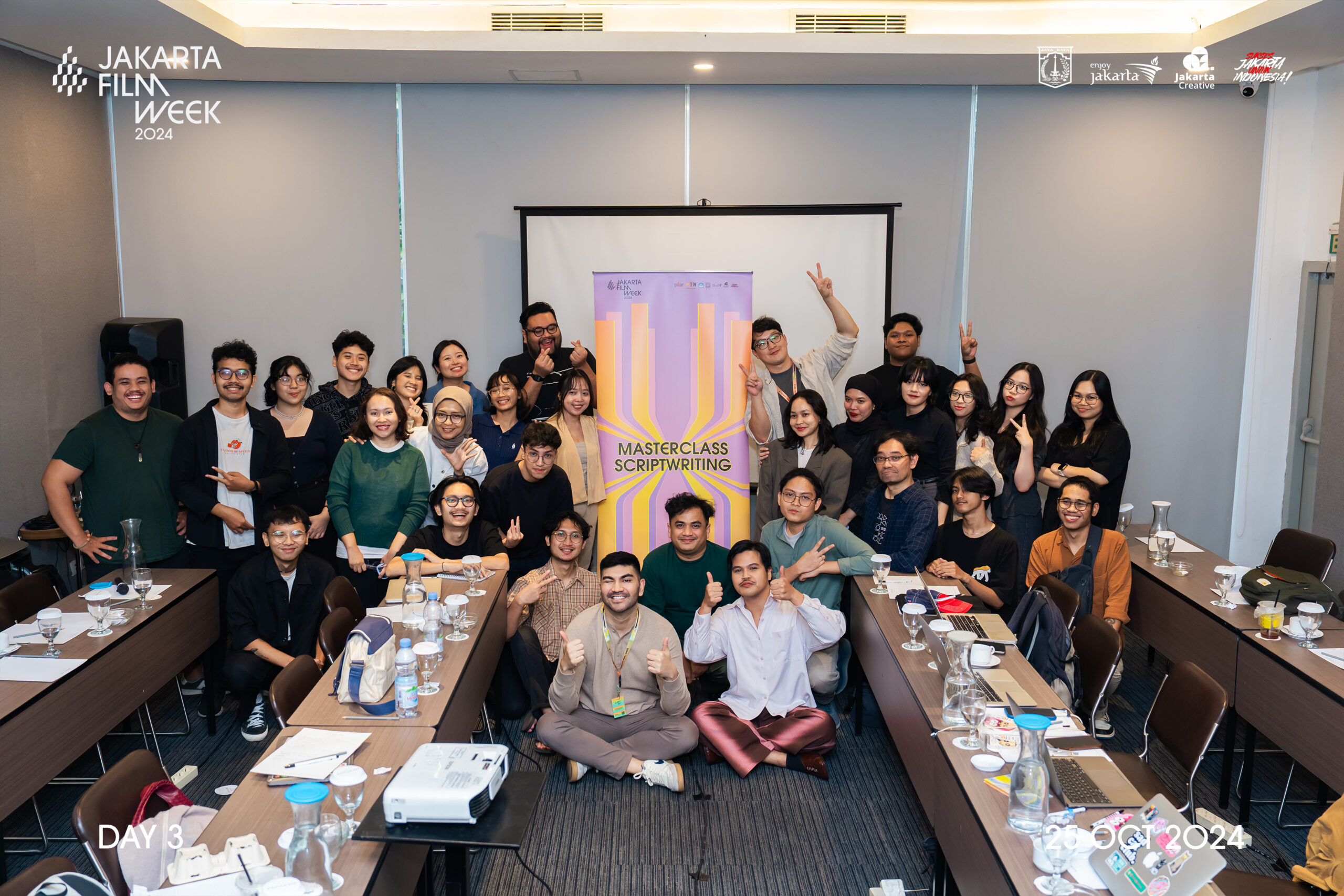 Hari ketiga pelaksanaan Jakarta Film Week 2024, 25 Oktober 2024, menghadiri program Masterclass Directing bersama Ho Miu Ki – Sutradara dan Penulis Skenario ‘Love Lies’, Masterclass Scriptwriting bersama Kim Min Ha – Penulis Skenario dan Sutradara ‘Idiot Girls and School Ghost: School Anniversary’ dan Masterclass Editing bersama Nick Cheuk – Sutradara, Penulis Naskah, Editor ‘Time Still Turns the Pages’, yang dilaksanakan di Mercure Hotel Cikini, Jakarta Pusat.
